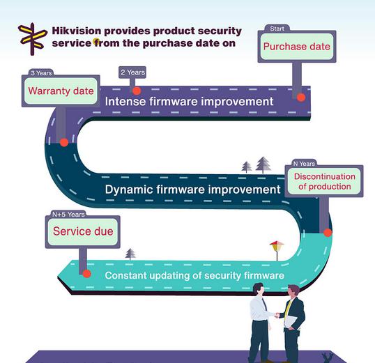 Politica Hikvision de suport pe termen lung cuprinde raspunsuri rapide la vulnerabilitati, update-uri de firmware si furnizarea firmware-urilor cu certificate de securitate.