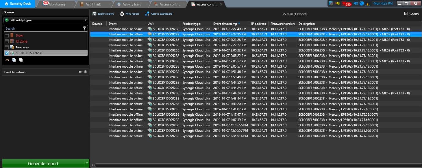 Printr-un raport specific, Genetec Security Center 5.9 indica care dintre echipamentele de control acces utilizeaza ultima versiune de firmware. Noile versiuni de firmware, de regula, contin solutionari pentru vulnerabilitatile descoperite in versiunile anterioare. Acest raport scoate in evidenta echipamentele cu versiuni depasite si pentru care actualizarea este obligatorie.