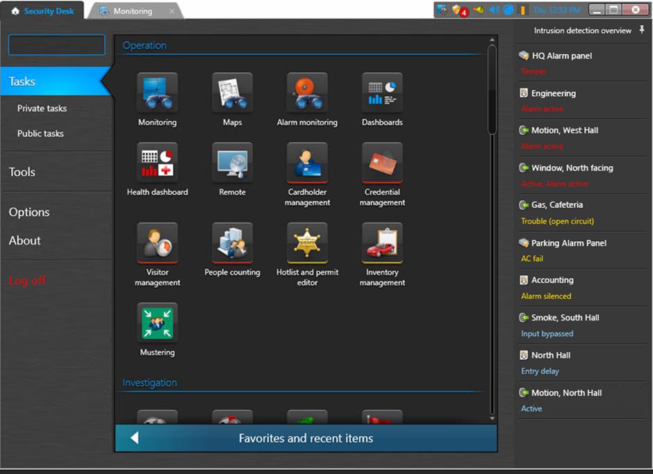 Camerele sunt mapate direct la intrarile individuale ale centralelor de efractie fata de versiunile anterioare in care acestea erau conectate la zonele de efractie. In conditiile generarii unei alarme de o intrare, camera asociata acesteia va fi afisata automat operatorilor. Acestia pot raspunde in timp util la eveniment. Multumita noului panou de evenimente specifice sistemelor de efractie, operatorii sunt in permanenta conectati la starea sistemului din orice fereastra/meniu/submeniu s-ar afla.