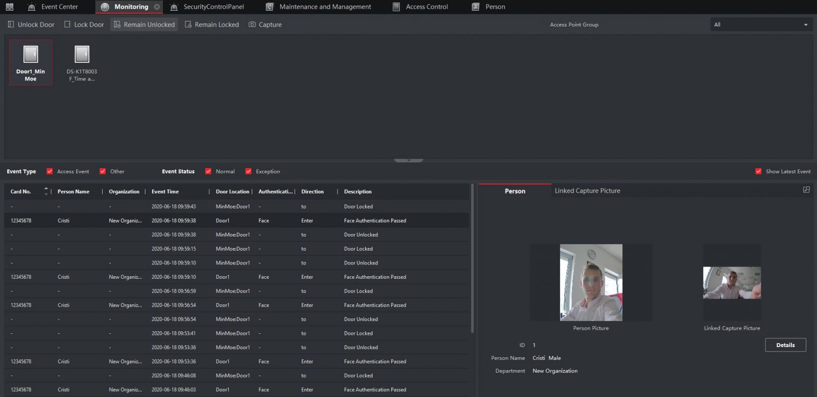 Atat monitorul cat si terminalul sunt inrolate in iVMS-4200 v3.0.