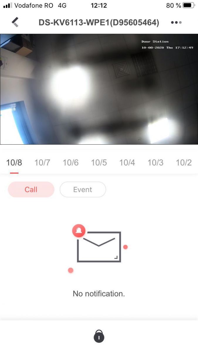 Dupa autentificarea cu succes in aplicatie, vom gasi postul de exterior online. HikConnect permite controlul usii fara initierea unei conversatii de la exterior, precum si accesul la imagini live.