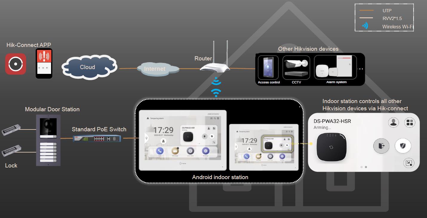 Interfata de operare difera de modelele anterioare. Aceasta permite controlul sistemului de efractie AXHub, respectiv AxPro din locatie, jucand asftel rolul de tastatura touch. De asemenea, gratie aplicatiei Hik-Connect preconfigurata, utilizatorii au acces facil la imaginile live, inregistrari si alte setari pentru echipamentele de supraveghere video. Noua interfata video imprumuta cateva dintre optiunile prezente si in generatiile anterioare de monitoare, optiuni de vizualizare live imagini de la postul de videointerfon exterior, apelare intrainterioare, acces la lista de apeluri si mesaje, respectiv setari.