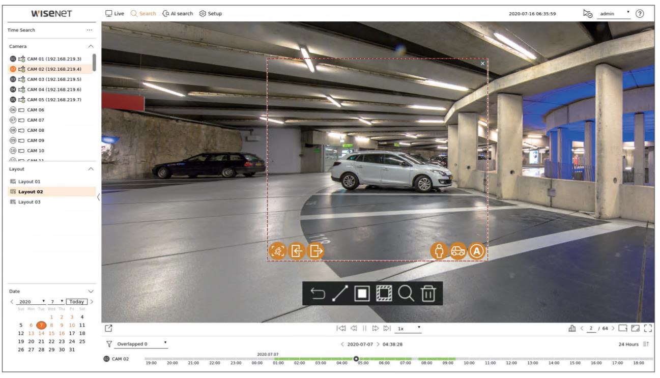 Operatorii pot efectua cautari ale evenimentelor AI generate preponderent de camerele IP Hanwha din generatia P. Utilizatorii pot cauta in functie de anumite attribute precum sex, varsta, palarie/caciula, geanta, culoarea hainelor, dar si dupa atribute specifice vehiculelor ca tip sau culoare. Aceste filtre suplimentare aduc evenimentele edificatoare mai rapid in atentia operatorilor, acestia putand asftel da dovada de proactivitate si actiona in consecinta.
