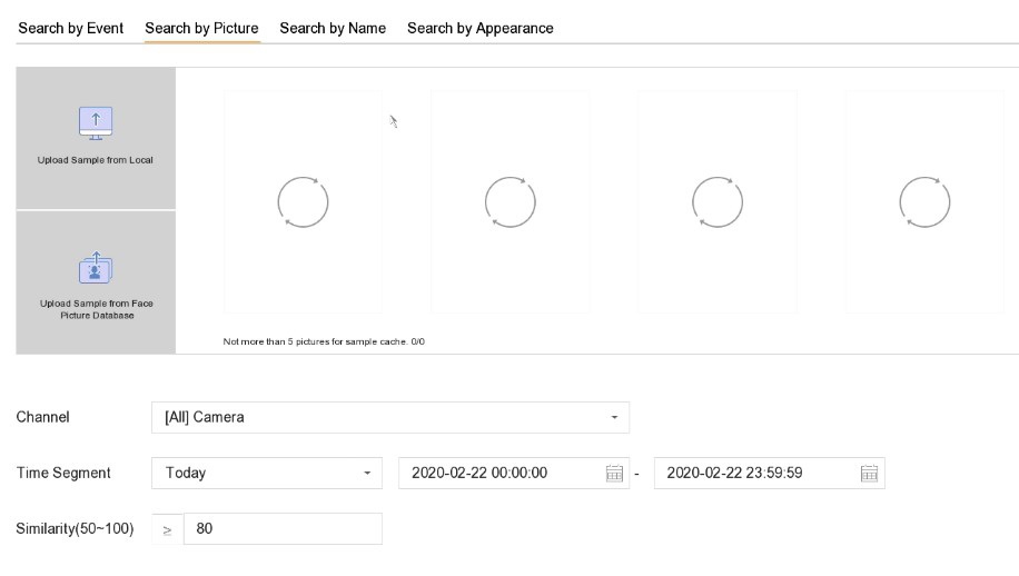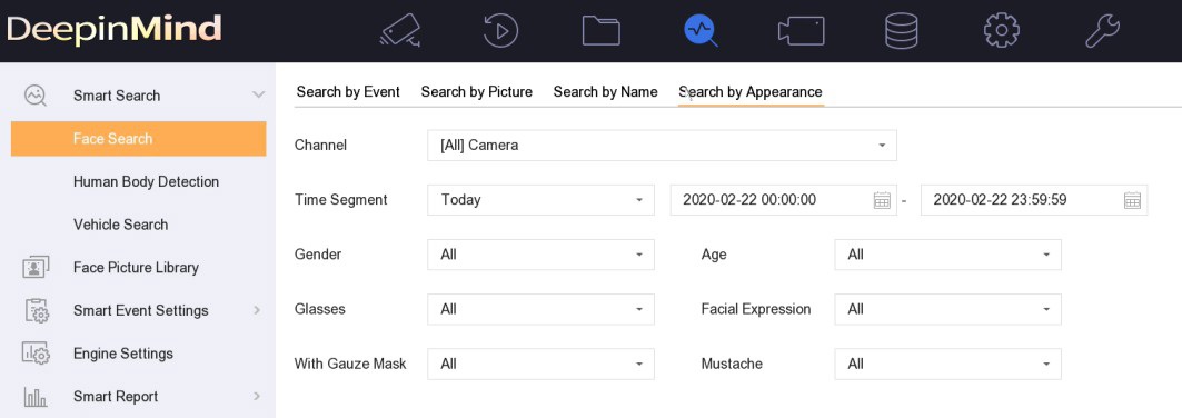 2. Cautarea inteligenta a datelor. Pentru evenimentele stocate la nivelul NVR-ului, operatorii au posibilitatea aplicarii a patru metode de filtrare: dupa eveniment, poza, nume sau constitutie. Aceste optiuni sunt disponibile doar in cazul cautarii faciale.