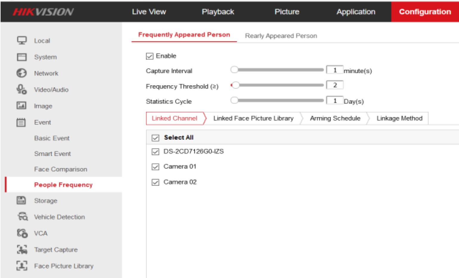 4. Generarea alarmelor in functie de frecventa aparitiilor. Sistemul poate genera o alarma daca o persoana este recunoscuta de un numar de ori mai mare sau egal cu un prag (frequency threshold). In modelul de mai jos s-a definit un prag de frecventa de aparitie de 2 ori.