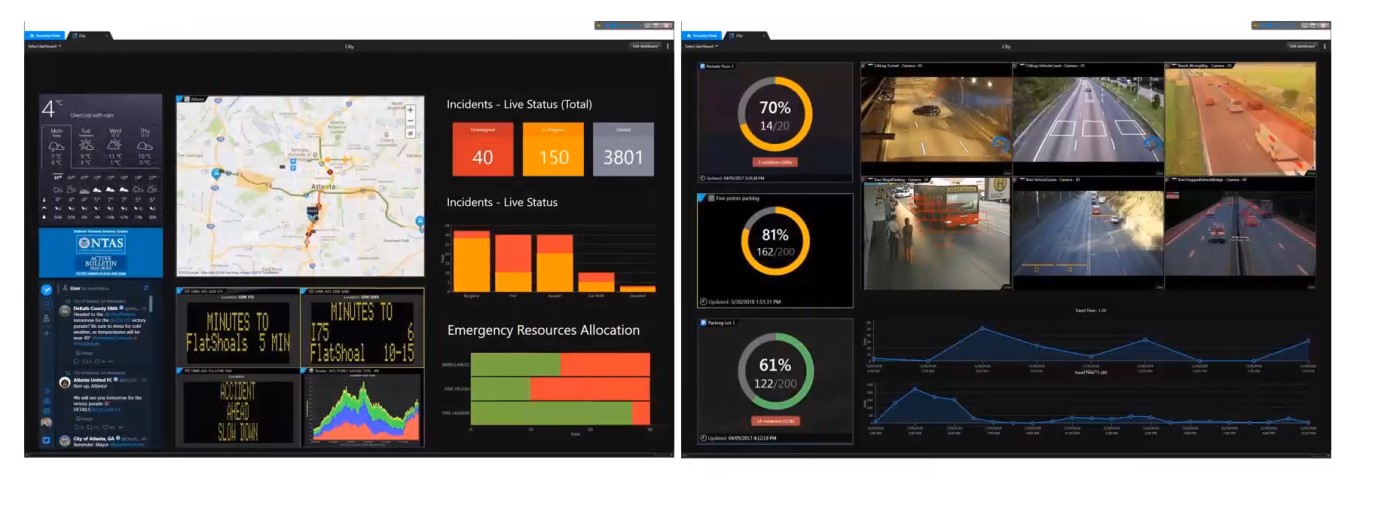 Flexibilitatea dashboard-urilor Genetec le califică și pentru aplicații de monitorizare orașe. O astfel de soluție poate fi compusă din unul sau mai multe dashboard-uri cu următoarele elemente: