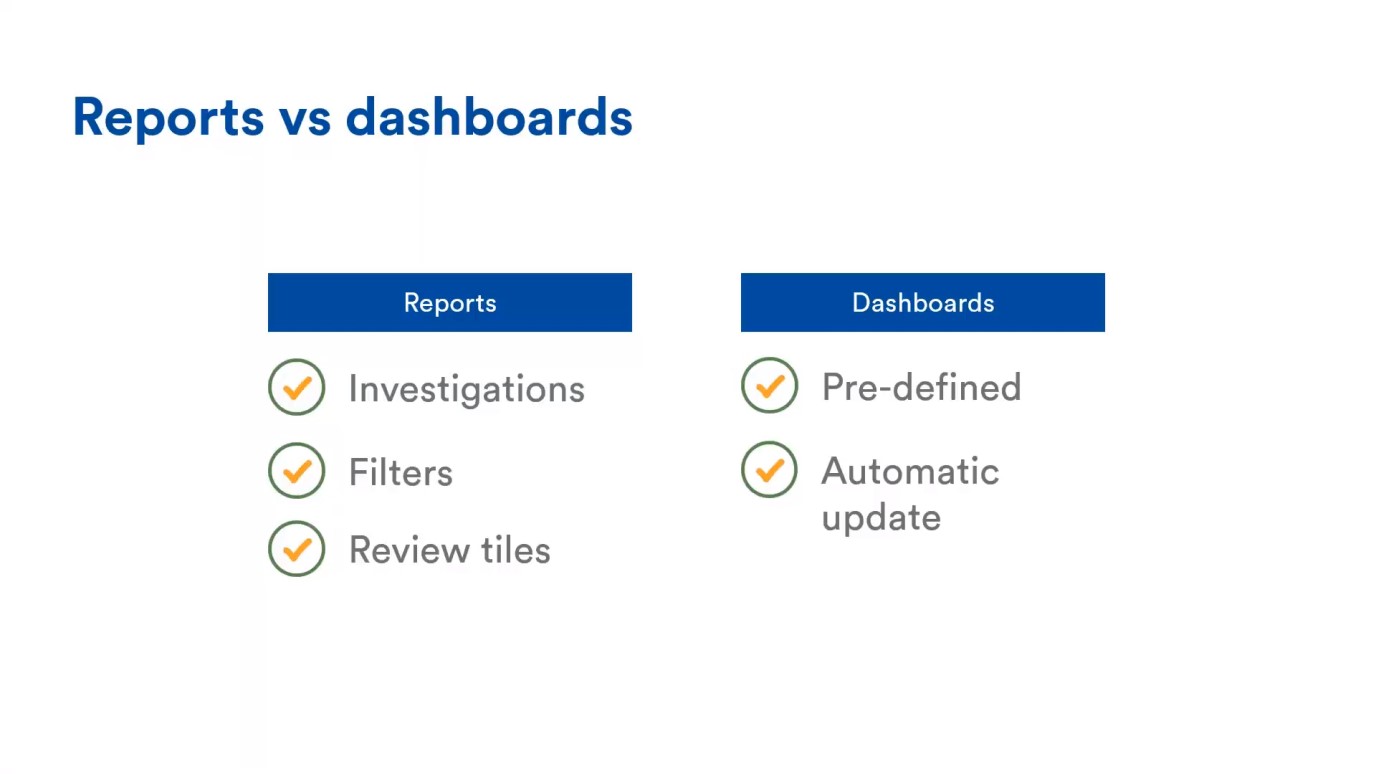 Un dashboard oferă informații în timp real asupra activităților setate. Practic, acesta creează un snapshot cu toate acțiunile care au loc. Spre deosebire de rapoartele clasice, care reprezintă o versiune statică de efectuare a investigațiilor, dashboard-urile afișează date în timp real.