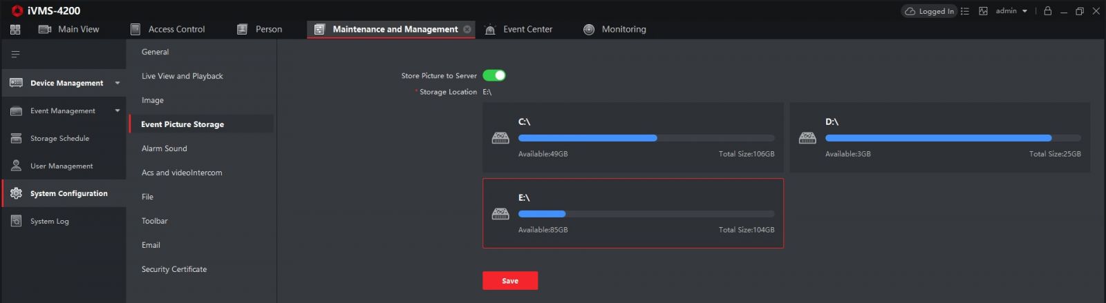 IVMS-4200 v3.1.1.6 permite stocarea locala a snapshoturilor furnizate de camera IP in contextul prezentarii cardului de catre utilizator. Pentru aceasta, se va naviga in meniul Maintenance and Management->System Configuration->Event Picture Storage. Se va activa optiunea Store Picture to Server, apoi se va selecta partitia pe care se vor stoca snapshoturile.