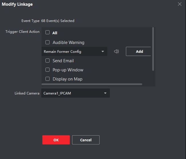 Recomandarea producatorului consta in activarea tuturor evenimentelor disponibile pentru acest model de centrala pentru care se vor salva imagini. Fie ca este vorba de o autentificare normala sau control modul lifturi, sistemul va stoca cate un snapshot pentru fiecare eveniment in parte. Din optiunea Edit Linkage se va crea aceasta legatura logica prin selectarea camerei de interes din lista de camere inrolate. Setarile se vor salva prin click pe butonul OK.