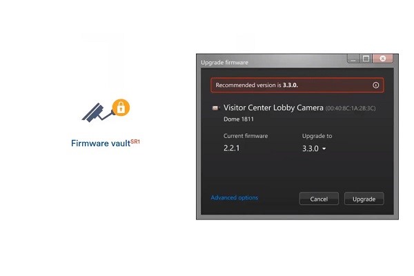 Genetec Security Center contine un nou instrument care permite descarcarea securizata si actualizarea firmware-urilor camerelor inrolate in sistem. Firmware vault reprezinta o componenta a serviciului Genetec Update Service si acceseaza cele mai recente fisiere de firmware certificate si testate de catre cei de la Genetec direct din Config Tool. Unul dintre primii producatori certificati Genetec ai carui fisiere de firmware sunt disponibile prin Firmware vault este Hanwha Techwin. Exista previziuni ca pana la finele acestui an vom avea posibilitatea actualizarii versiunilor de firmware si pentru alti producatori consacrati compatibili cu Genetec Security Center.