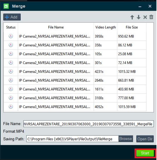 4. Fisierul final va fi salvat in locatia C:\Program Files (x86)\VSPlayer\FileOutput\FileMerge. Acesta poate fi redat cu ajutorul aceluiasi software VSPlayer.