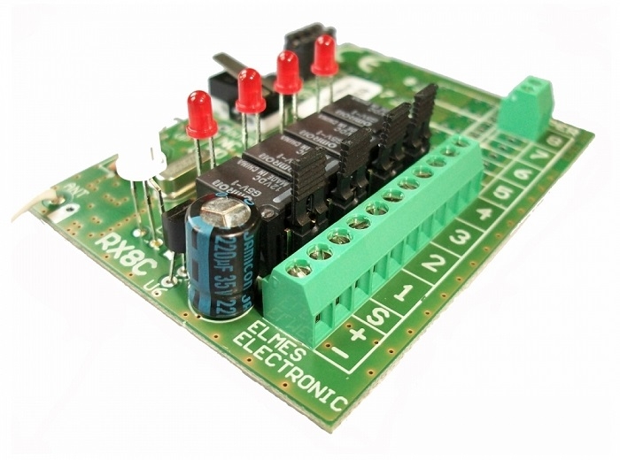 Interfata radio universala cu 4 canale, maxim 11 detectori/telecomenzi per receptor, iesiri releu