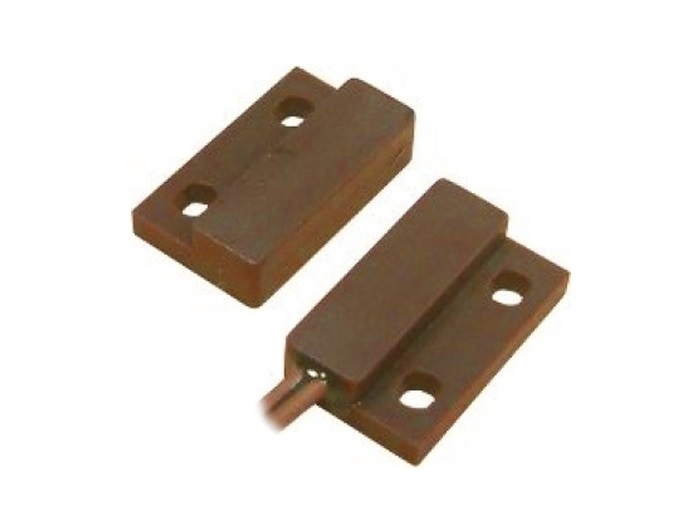 Minicontact montaj aparent din plastic maro, interspatiu 15 mm, contact NC, 0.5 A / 100 VDC, fir conexiune 30 cm