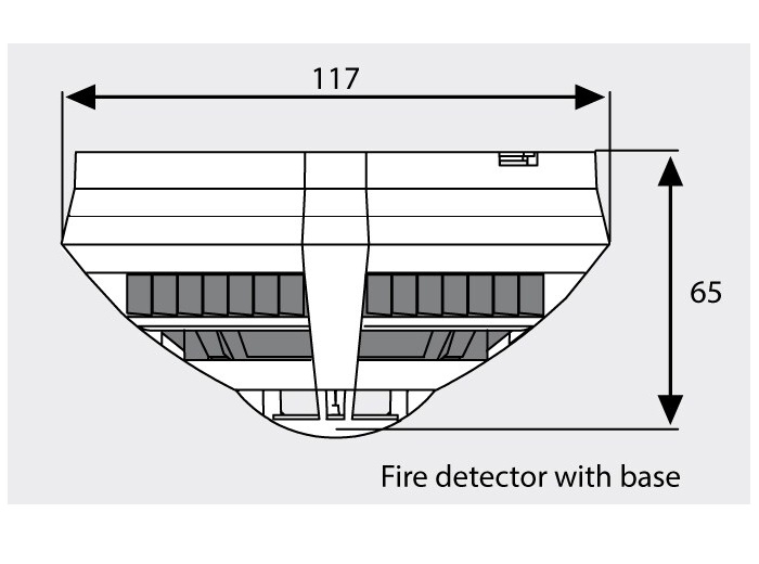 Detector multicriterial O2T/So IQ8Quad cu dispozitiv acustic de alarmare integrat, avertizorul acustic nu ocupa o adresa scurta suplimentara, alimentare din bucla, nivel acustic programabil (pana la 92 dB(A) la 1m), 20 tonuri de semnalizare diferite, optiune „soft start”, numar programabil de repetari, activarea tonurilor de semnalizare poate avea loc si pentru alte criterii pe langa alarma de incendiu, tensiune de lucru 8-42 VDC, suprafata supravegheata max. 110 m², inaltime de supraveghere max. 12m, dimensiuni ø: 117 mm i: 67 mm (incluzand baza), masa cca. 145g