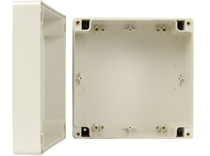 Carcasa din ABS bej, grad protectie IP65, pentru utilizare in interior/exterior, dimensiuni externe W=160, H=160, D=90 (+/-2mm), dimensiuni interne W=152, H=122, D=80 (+/-2mm)