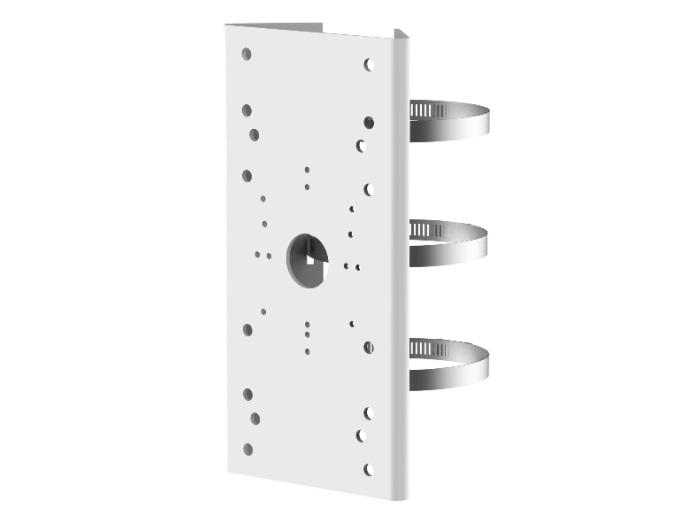 Suport montaj pe stalp pentru camerele bullet Hikvision, din otel inoxidabil, diametru ajustabil de la 67 mm la 127 mm, dimensiuni 127 x 46 x 250 mm, greutate 1480 g, capacitate maxima incarcare suport 10 kg