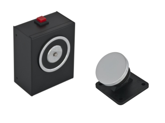 Electromagnet de retinere a usii deschise, cu forta de retinere de 50kg, montare aplicata, tensiune alimentare 12/24 Vcc. Deblocarea se poate realiza manual prin deblocarea butonului. Contraplaca reglabila ajuta la o instalare mai usoara a electromagentului. Pachetul include 1 electromagnet (din metal, dimensiuni 85 x 70 x 40 mm), 1 contraplaca (din plastic, dimensiuni 64 x 64 x 55.5 mm), 8 holsuruburi si 1 manual.