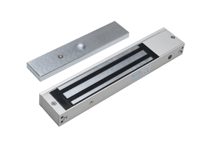 Electromagnet aplicat, forta retinere 280kg, cu led si monitorizare (NC-COM-NO), potrivit pentru usi din lemn, din sticla, metalice si anti-foc, carcasa din aluminiu (250 x 42 x 27 mm) si contraplaca din otel inoxidabil (180 x 38 x 13.5 mm), tensiune de alimentare 12/24VDC, protectie de supratensiune incorporata