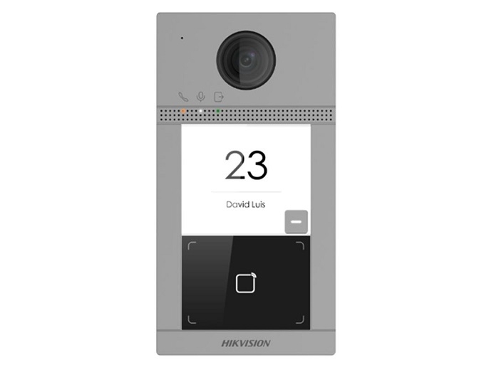 Post de exterior cu cititor de carduri Mifare 13.56 MHz, 1 buton de apelare, camera 2MP cu supliment IR, standard WiFi 802.11 b/g/n, microfon omnidirectional si difuzor incorporate, reducere zgomot si ecou, capacitate 2000 utilizatori si 10000 carduri, 4 intrari alarma, 1 interfata retea, 1 tamper, max. 2 butoane exit, 1 x RS-485, 3 indicatoare, montaj aplicat, dimensiuni 174 x 91 x 29 mm, IP65, IK08, PoE / 12VDC
