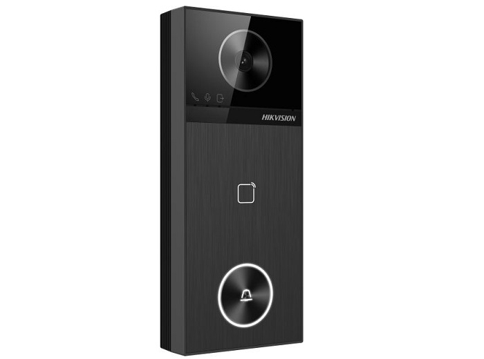 Post de exterior cu 1 buton de apelare si camera 4MP, unghi de vizualizare 150° (H), 75° (V), IR 3m, Wi-Fi 6 - 2.4G, multiple metode de deschidere (card Mifare 1, Bluetooth, Hik-Connect, post de interior), capacitate 2000 utilizatori si 10000 de carduri, microfon omnidirectional si difuzor incorporate, control 2 yale, 4 intrari alarma, accepta card TF max. 128 G, 3 indicatoare LED, IP65, montare aplicata, dimensiuni 164 x 69 x 24.7 mm, alimentare 12VDC/PoE