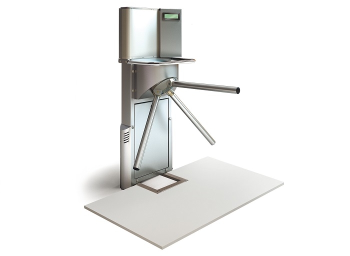 Turnichet electromecanic unidirectional din aluminiu de interior/exterior, 3 brate tip drop-arm, anti-panic, latime blocaj 530mm, 30 persoane/minut, loc pentru cititoare inclusiv cititoare long-range, posibilitate de instalare monitor LCD/TFT sau alte carcase de cititoare speciale, modul electronic complex de control inclus, 24V DC, aplicatii: ski, parcuri distractie etc.
