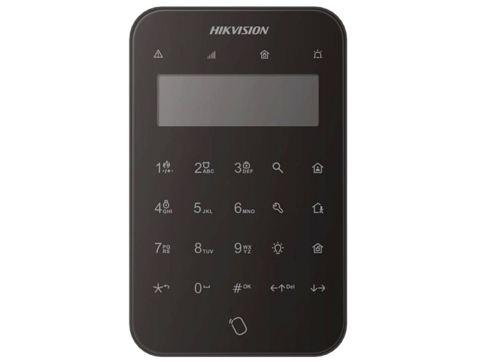 Tastatura wireless AX Pro cu ecran LCD, comunicare bidirectionala wireless 868 MHz, distanta RF max. 1200m in camp deschis, indicator LED, configurare sistem prin ecran LCD sau de la distanta prin aplicatie, alarma incendiu, panica si medicala printr-o singura apasare, 3 porturi seriale, suporta cititor de proximitate incorporat, alimentare cu 4 baterii CR123, tensiune 3V, curent standby 80 uA, curent maxim 300 mA, montare pe perete, dimensiuni 174.63 x 109.62 x 25.25 mm, greutate 348g cu baterii, 282g fara baterii, culoare neagra