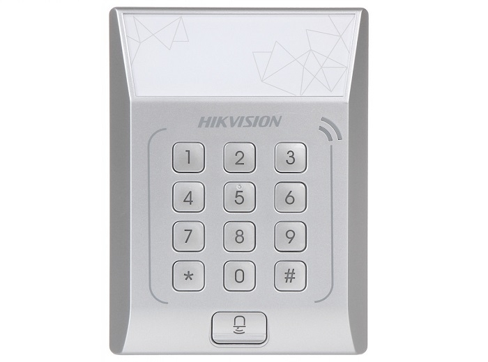 Cititor de proximitate standalone pentru carduri Mifare, tastatura cu 13 taste, procesor 32-bit, 1 buton exit, 1 senzor usa, 1 iesire pentru sonerie, 1 iesire E-lock, beeper, indicator LED, capacitate maxima 3000 carduri, autentificare prin citire carduri sau citire carduri si tastare parole, deschide usa via parola card daca metoda de autentificare e cardul, alimentare 12VDC, dimensiuni 126.5 x 94.5 x 24 mm