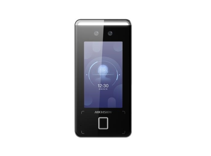 Terminal de recunoastere faciala cu cititor de carduri si de amprente, distanta recunoastere faciala 0.3m - 1.5m, durata recunoastere faciala < 0.2 sec./utilizator, rata acuratete recunoastere faciala >99%, capacitate 3000 fete, 3000 carduri, 3000 amprente, 150,000 evenimente, tip carduri - Mifare 13.56MHz, durata recunoastere amprenta < 1 sec., ecran LCD 4.3" touchscreen capacitiv, rezolutie video 2MP, 2 lentile, montaj aparent, IP65, alimentare prin conector 2 pin, 12VDC, 2A, dimensiuni 172.5 x 83.2 x 22.7 mm