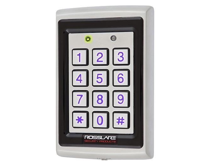 Controller standalone cu cititor carduri EM 125 kHz, antivandal, varianta cu carcasa lata din metal - potrivita pentru medii cu conditii solicitante, taste mari cu iluminare albastra, heater intern (previne inghetarea tastelor), 2 indicatoare LED, sounder, tamper optic, iesiri releu - lock strike si auxiliara, intrari - REX (N.O. Dry Contact) si auxiliara (N.O. Dry Contact, 10 moduri programabile), capacitate 500 utilizatori (cod single/dual fiecare), coduri PIN din 4-8 cifre, 3 niveluri de securitate (normal, secure, master), rezistenta la apa, IP54, alimentare 12-24VDC (de la sursa) / 16-24VAC (de la transformator)