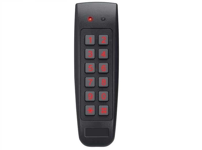 Cititor convertibil (cand e conectat la o sursa de alimentare inteligenta din seria PS-x25T sau la modulul MD-25TB, cititorul e convertit automat intr-un controller standalone - capacitate de 500 utilizatori), citire carduri si tag-uri EM 26-Bit (125 kHz), tastatura cu backlight de culoare rosie, format iesire Wiegand 26-Bit sau Clock & Data, indicator LED, sounder, tamper optic, IP65, potrivit pentru interior/exterior, alimentare 5-16 VDC, dimensiuni 137 x 44 x 21 mm, greutate 160g