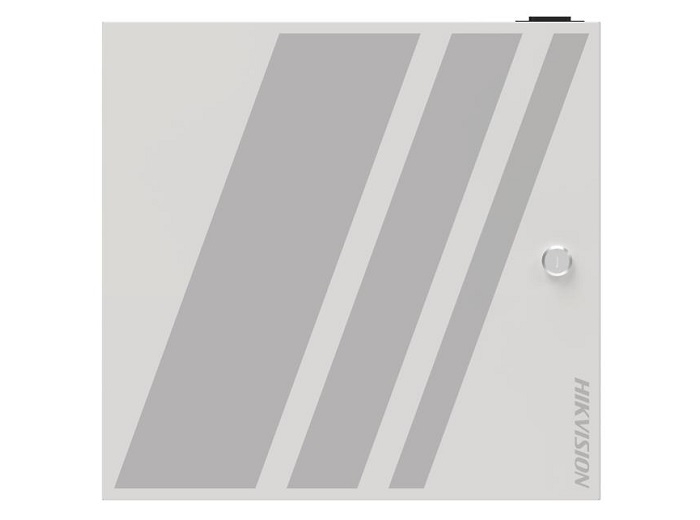Cutie metalica cu sine DIN pentru instalarea a maxim 2 module DS-K2M002X, include o sursa de alimentare 100W, dimensiuni 345 x 360 x 88.3 mm