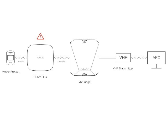 Modul pentru conectarea sistemelor de securitate AJAX cu transmitatoare VHF third-party, varianta cu carcasa, culoare alba, de interior, asigura un canal aditional pentru centrala in comunicarea cu o statie de monitorizare, face posibila folosirea sistemelor AJAX in locatii unde conexiunea la internet e instabila, alarmele si evenimentele sunt transmise via unde radio VHF, distanta semnal radio max. 1800 m, 8 iesiri potentiale, protectie anti-sabotaj, alimentare 100-240V~, 50/60 Hz (backup pe baterie 12V, 4/7 Ah), dimensiuni cu carcasa 196 x 238 x 100 mm, greutate cu carcasa 840g