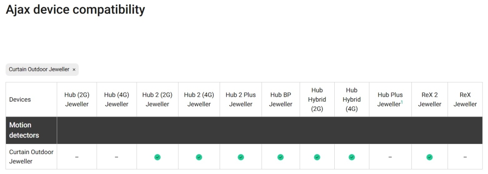 | Gama | Jeweller (wireless) |