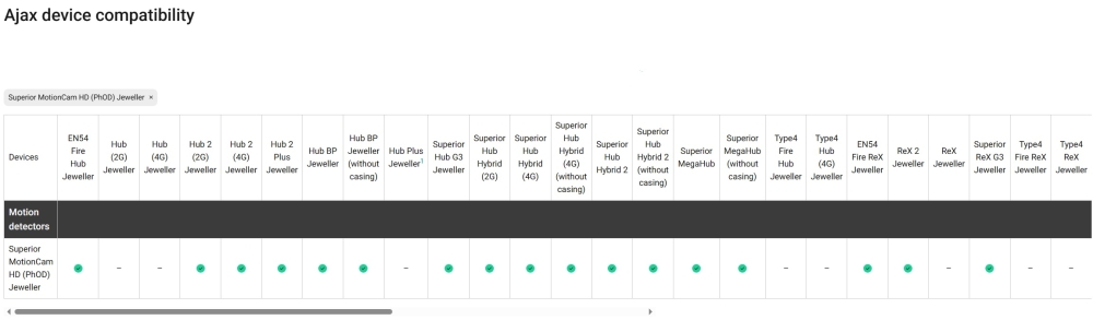 | Gama | Superior - Jeweller (wireless) |