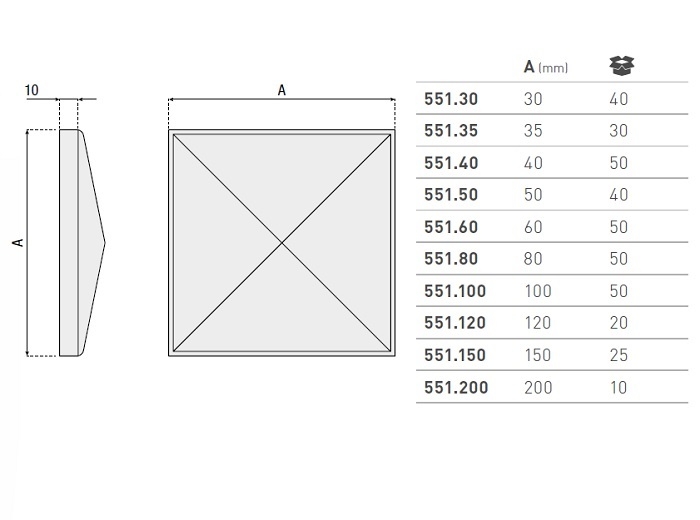 Capac patrat negalvanizat pentru stalpii metalici rectangulari de gard, 100 x 100 x 10 mm