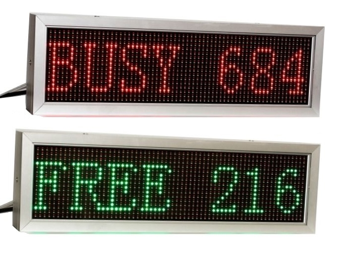 Afisaj RG8x1 Metrici, 8 caractere x 1 rand, LED-uri rosii/verzi, conexiune LAN la Metrici, declansare de la 4 bucle inductive, poate comanda 4 bariere, sursa 220VAC