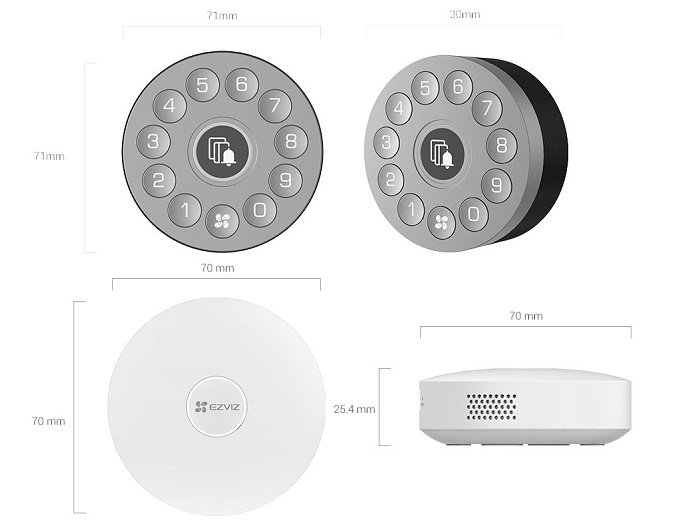 Set yala inteligenta DL01S cu tastatura multifunctionala DL01CP si home gateway A3. Yala cu maner din aliaj de aluminiu si carcasa din plastic, dimensiuni 126.9 x 43.2 x 56.9 mm, alimentare cu 4 baterii AA alcaline. Tastatura IP56, dimensiuni Φ 71 × 30 mm, alimentare cu 2 baterii AA alcaline, capacitate max. 50 seturi de parole a cate 6-10 cifre fiecare. Home gateway cu antena incorporata, alimentare micro USB, 5 VDC / 1A, dimensiuni Φ 70.0 × 25.4 mm