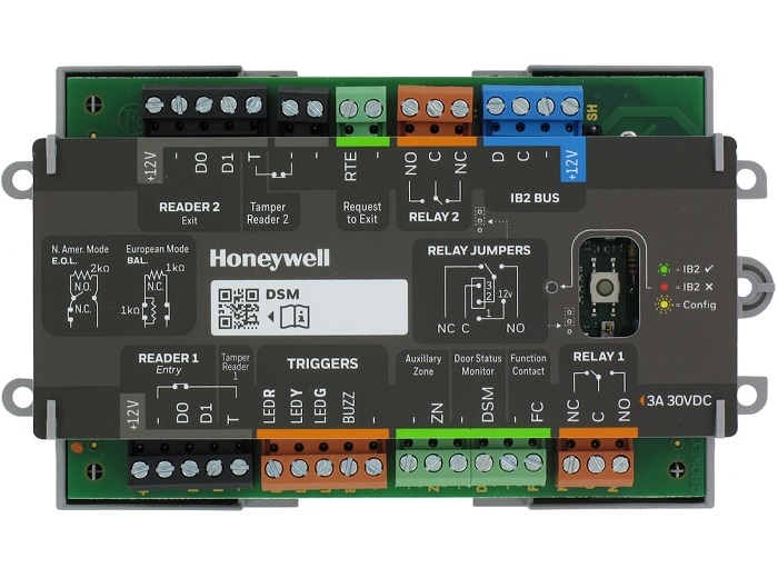 Modul control 1 usa (2 cititoare) pentru sisteme antiefractie MAXPRO, Grade 3, controleaza cititorul, buzzerul si 3 LED-uri, intrare request to exit si door status monitor, releu door strike/lock 12-30VDC, grad protectie IP42 si IK06, alimentare 13.8 VDC nominal (10-14.5 VDC), curent in repaus 60 mA, curent max. 185 mA (releu activ), dimensiuni 13 x 8.6 x 2.6 cm, greutate 120g