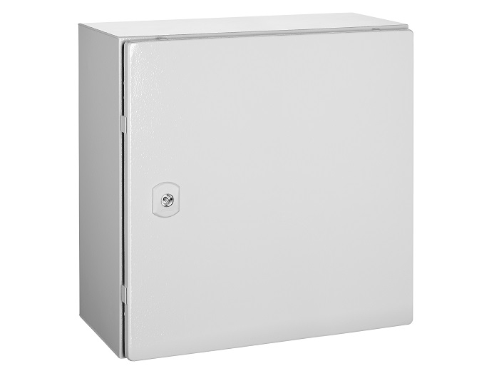 Cutie din tabla metalica + contrapanou, 1 usa, cu 1 incuietoare standard dublu bit, cu o flansa L=300 A=115 mm, tip B, IP66, IK10, dimensiuni 400 (inaltime) x 400 (latime) x 210 (adancime) mm, culoare gri deschis, standard produs EN 62208