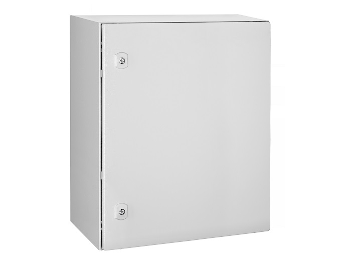 Cutie din tabla metalica + contrapanou, 1 usa, cu 2 incuietori standard dublu bit, cu o flansa L=400 A=190 mm, tip E, IP66, IK10, dimensiuni 600 (inaltime) x 500 (latime) x 300 (adancime) mm, culoare gri deschis, standard produs EN 62208