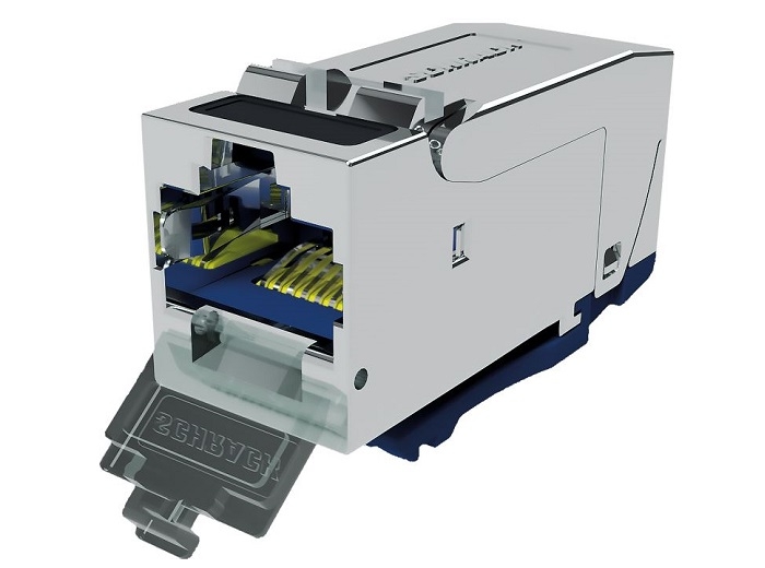 Modul S-JACK RJ45 ecranat, Cat.6a/10GB, format Schrack B (SFB), modul toolless (poate fi conectat fara unelte speciale), asigura o densitate mare de conectare de pana la 48 de conexiuni RJ45 pe 1U, modul realizat din zinc turnat sub presiune cu suprafata nichelata, geometria speciala de contact in combinatie cu o placare cu aur de 30µ'' asigura PoE, PoE+ si 4PPoE 100W in toate conditiile, diametru conductor solid 0.51-0.65mm, AWG24/1 - AWG 22/1, diametru de izolare 5-9mm, protectie IP2X, IPX0. Se comercializeaza doar la cutii de cate 24 bucati.