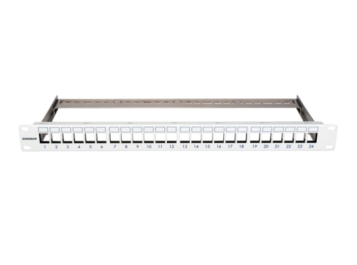 Patchpanel pentru 24 module TOOLLESS LINE, 1UH, montaj 19 inch, culoare gri deschis (RAL7035), dimensiuni 483 x 45 x 152 mm, greutate 0.70 kg