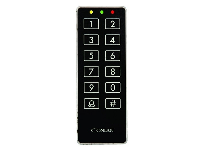 Tastatura ultrapalata (12 taste), culoare neagra, cu iesire Wiegand 26 biti, de interior / exterior, IP67, 26 biti pentru coduri si 8/4 biti pentru fiecare cifra, 3 LED-uri (galben, verde, rosu) programabile, tensiune alimentare 9-27 VDC, dimensiuni 130 x 50 x 8 mm