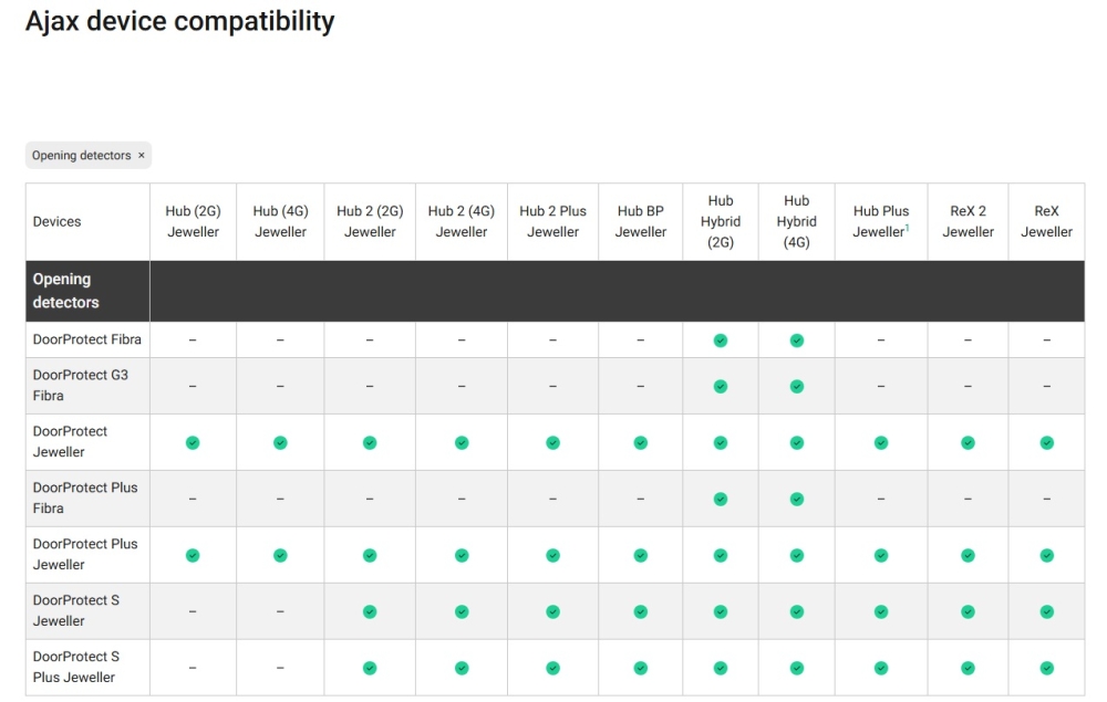 | Gama | Jeweller (wireless) |