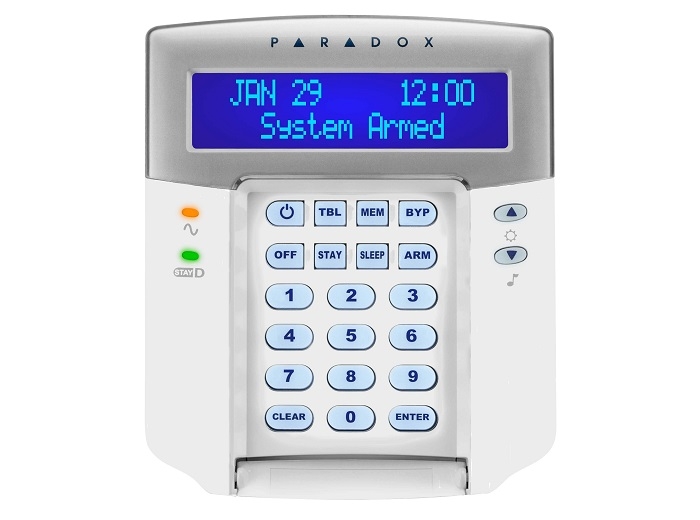 Tastatura cablata LCD, cu 32 zone, Stay D, LCD cu etichete programabile, actualizare firmware local, utilizand 307USB si Win Load, 1 zona de tastatura, zone tip clopotel setabile independent, 3 alarme de panica care pot fi activate din tastatura, afisaj real-time al zonelor de alarma (pana la dezarmare), se conecteaza la BUS pe 4 fire, meniu in lb. romana