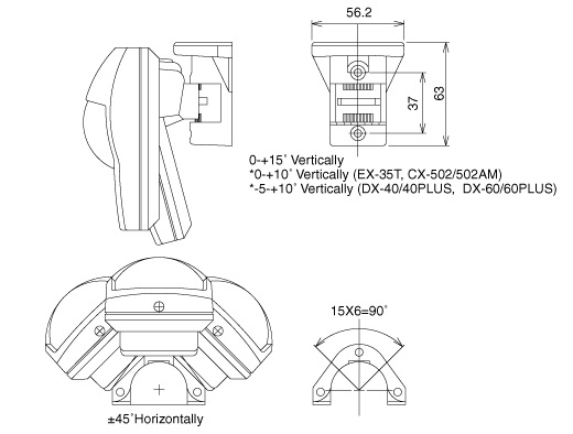 Suport de perete si tavan cu unghi reglabil pentru seria OML-DAM/DT/ST/AM, DX-40/60, DX-40/60PLUS, CX-502/502AM, FX-40/40D