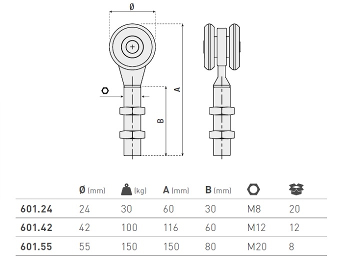 2 roti culisare sina, M8, Ø 24 mm, 30 kg, 60 x 30 mm