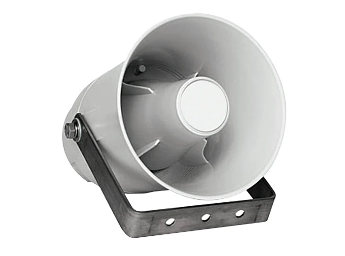 Difuzor cu palnie, certificat EN54-24, nivel ridicat al presiunii acustice si protectie eficienta impotriva influentelor mediului, grad de protectie IP 66, echipat cu conector ceramic si siguranta termica, carcasa din ABS, gri, piesa de fixare in forma de „U” permite montarea usoara, reglarea puterii se face in treptele 10 W, 5 W, 2.5 W, 1,25 W, incarcare maxima admisa 10, separare canale >75, dispersie sunet 237° @ 1 kHz, sensibilitate EN54-24, 1 W / 1 m 86.5 dB, sensibilitate EN54-24, max 1m 96.5 dB, domeniu de redare 569~7000 Hz, dimensiuni ø: 142 mm D: 210 mm, masa aprox. 1.4 kg