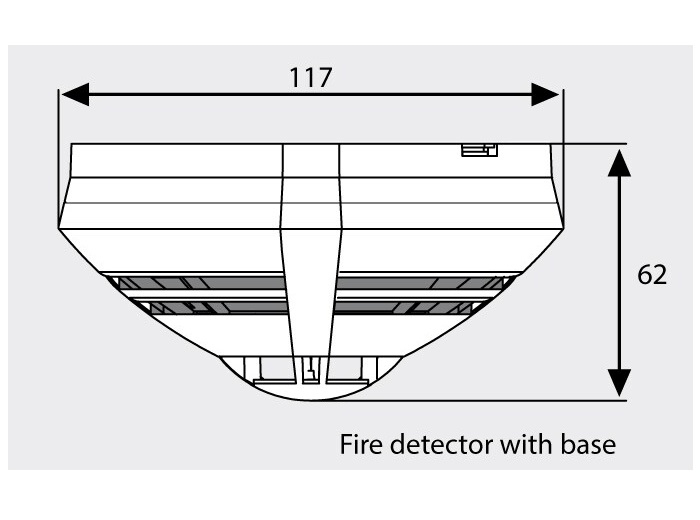 Detector multicriterial IQ8QUAD cu senzor optic de fum, senzor de cladura si senzor de gaz (CO) pentru recunoasterea preventiva a unui incendiu, izolator integrat, recunoastere timpurie a arderilor mocnite pana la arderile deschise prin evaluarea combinata a dispersiei optice, a cresterii temperaturii si a prezentei gazului, tensiune de lucru 8-42 VDC, suprafata supravegheata max. 110 m², inaltime de supraveghere max. 12 m, specificatie detector EN 54-7/-5 A2/-17, CEA 4021, certificare VdS G 205072, material plastic ABS alb, dimensiuni ø: 117 mm i: 49 mm (62 mm incluzand baza), masa cca. 110g