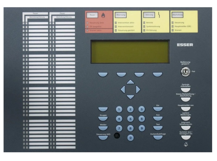 Panou frontal de operare cu indicatoare pentru 64 zone, limba romana, afisaj alfanumeric, ecran LCD mare cu 8 randuri x 40 caracter sau 1/4-VGA-display